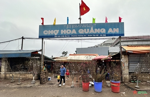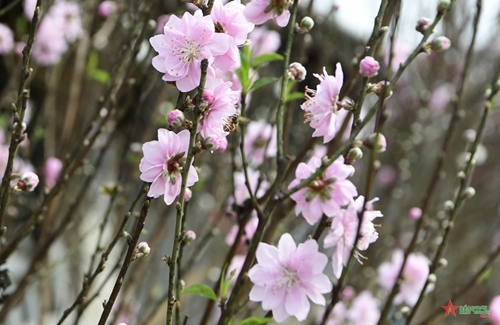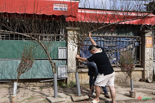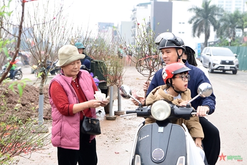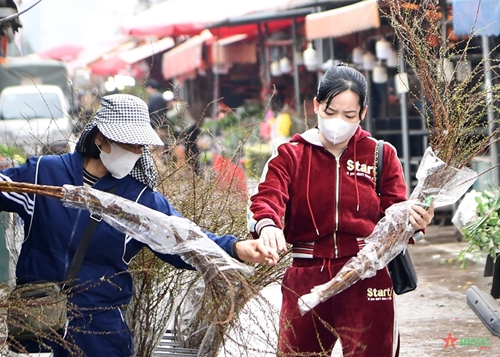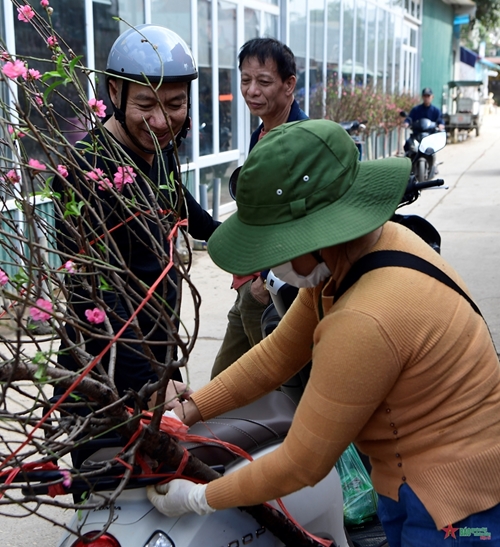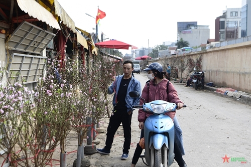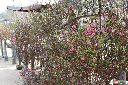 日新桃花这些日子在河内西湖郡广安花卉市场出售(图片来源:人民军队报)