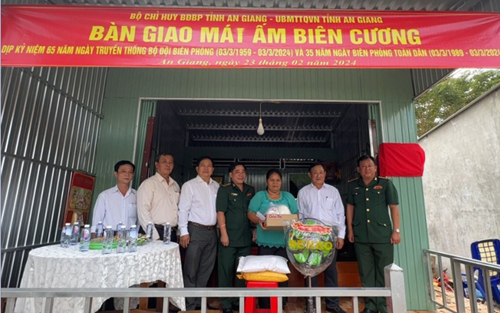 边防部队与安江省越南祖国阵线委员会配合,为边境地区困难群众提供“边境温暖之家”。