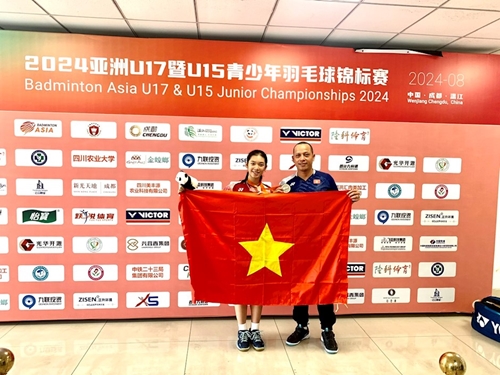 越南羽毛球选手阮氏秋玄在2024年亚洲U17暨U15青少年羽毛球锦标赛U15年龄组女子单打比赛上夺得银牌(图片来源:hcmcpv.org.vn) |