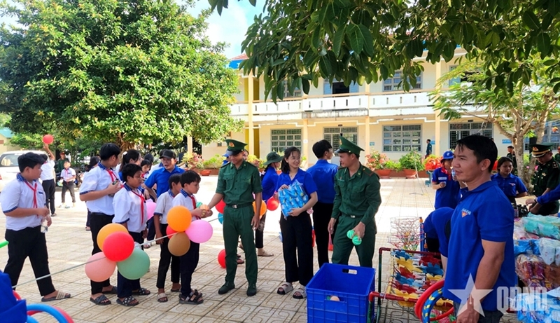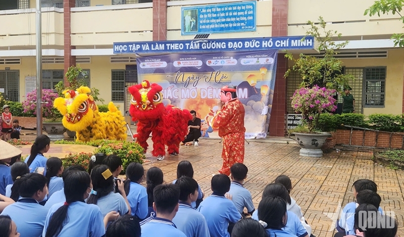 在西宁省各边境乡的学校及社区活动点,孩子们踊跃参与了舞狮、提灯游行、文艺表演和民间游戏等活动。