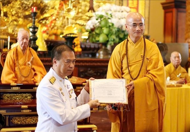 越南佛教协会证明理事会法主释智广长老,越南佛教协会证明理事会副法主、治事理事会主席释善仁长老以及越南佛教协会神职人员等参加活动。