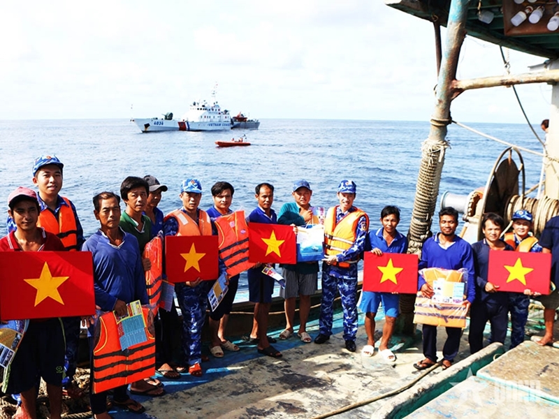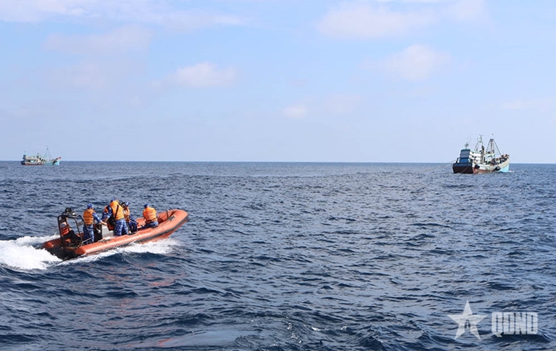 前线指挥所指挥长阮德宣上校表示:近期,该单位负责管控的整个毗连海域航线安全秩序基本稳定,未发生渔船非法越界遭外国扣押事件。平均每日有80至130艘越南渔船在该区域作业,主要集中于分界线西侧。职能部门密切配合,致力于开展检查、监督、宣传工作,帮助渔民熟练掌握并严格遵守防范IUU捕捞规定。