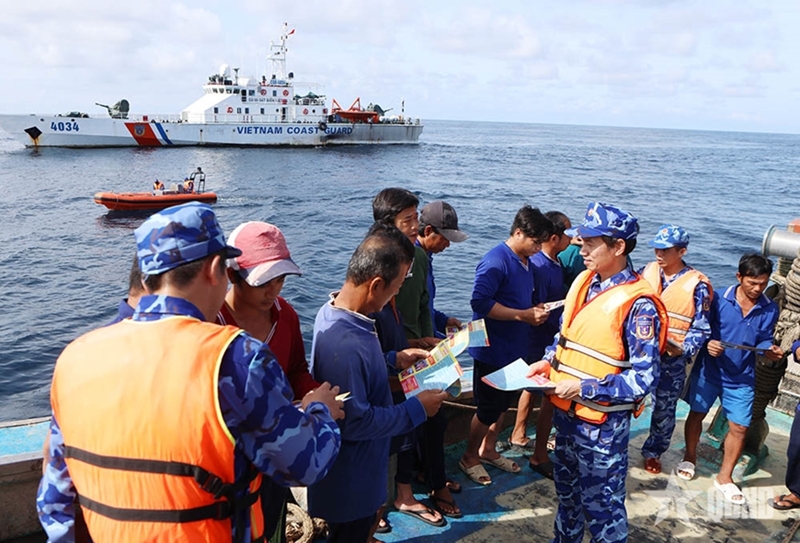 秉持这一精神,海警三区的每次出航不仅是单纯的巡逻检查任务,更是一场“播撒知识,树立信任”的旅程,有助于提升社区意识,维护越南水产业声誉,尤其是在全国正全力争取解除欧盟(EC)“黄牌”的背景下。