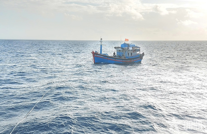 此前,该渔船在北-西北海域,距离越南长沙特区红木礁约48海里处作业时,变速箱突发故障,导致失去机动行驶能力。