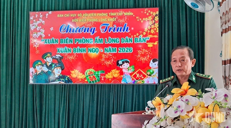 西宁省边防部队指挥部副指挥长黎仲情上校在活动上致辞,高度评价了Long Khốt边防屯关爱边境地区同胞的活动,他认为这是一项意义重大的活动,加强了军民团结,并在边境地区建设坚实“民心阵势”。