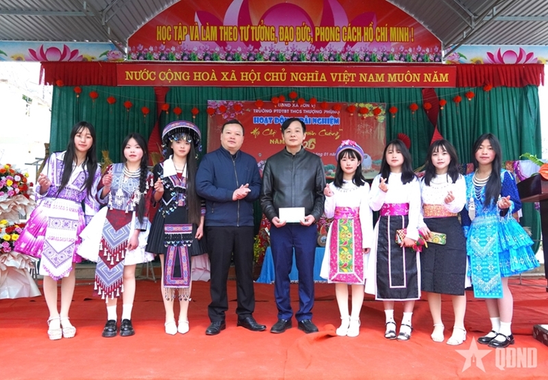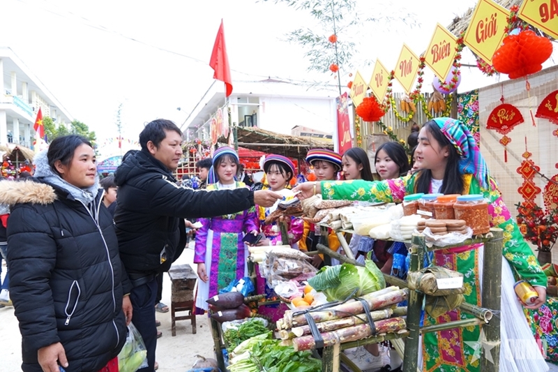 对学生们来说,这场集市的方方面面都充满了欢乐。来自8A1班的学生宋氏丽(Sung Thi Lia)分享道:“我很高兴能参加这次集市。我们班一起布置了摊位,每个人都尽了全力。我学会了如何介绍我们民族的产品,还和朋友们一起玩游戏。我觉得今年的春节来得更早,学校里的气氛也更温暖了”。