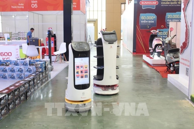 2026年春季博览会上的机器人接待员(图片来源:越通社) |