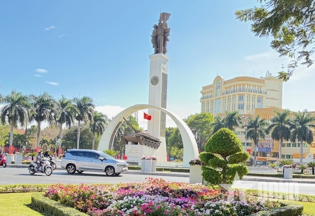 多乐省邦美蜀坊邦美蜀胜利纪念碑区也装饰一新,旗帜飘扬,还有许多花盆和微缩景观。