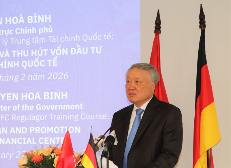 2月27日上午,越南政府常务副总理、越南国际金融中心执行委员会主席阮和平在胡志明市出席由越德大学举办的国际金融中心管理者培训班(IFCR03)开班典礼并致贺词。