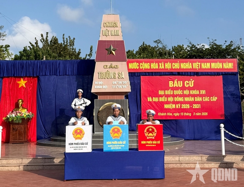人民军队:与越南全国同步,庆和省长沙特区剩余的两个投票点于3月15日6时15分同时举行开幕仪式,共同选出德才兼备的代表进入第十六届国会和2026-2031年任期各级人民议会。