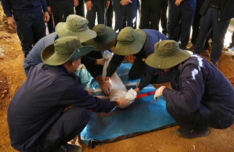 清化省军事指挥部烈士遗骸收迁队正在收迁烈士遗骸(图片来源:人民军队报) |