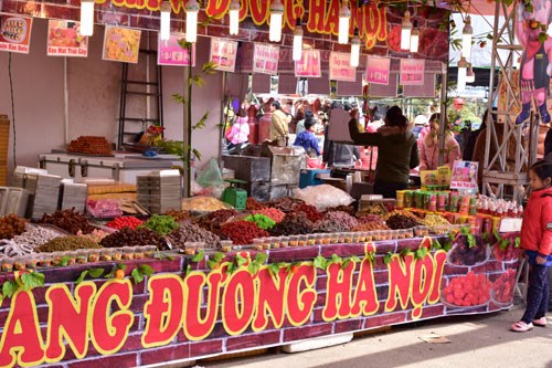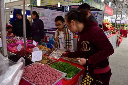 今年展销会设在2万平方米的面积,共有数百个展位,参展的产品丰富多样,主要是服务春节需要的糖果、盆景、桃花、橘子、手工艺品等年货。