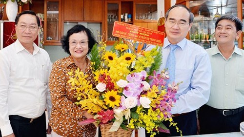 值越南医师节63周年(1955.2.27——2018.2.27)之际,越共中央政治局委员、胡志明市市委书记阮善仁2月25日率团走访慰问胡志明市医药大学医务人员;慰问原卫生部部长、副教授、博士、医生陈氏忠战和已故胡志明市卫生局经理、劳动英雄、院士、博士杨光忠。