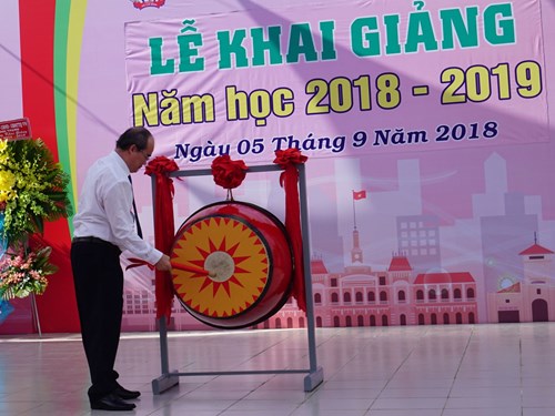胡志明市平盛郡嘉定高中学校9月5日举行2018-2019新学年开学典礼。越共中央政治局委员、胡志明市市委书记阮善仁出席典礼并发表讲话。