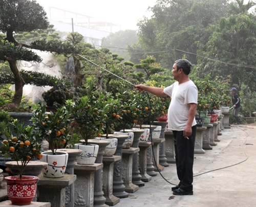 河内市多年种盆栽金桔的张玉春先生表示,每年,顾客对盆栽金桔就有不同的要求,今年是己亥年,所以很多人都都喜欢一个种在猪形盆子的金橘树,摆在家里迎春,希望新年快乐、身体健康、万事如意。