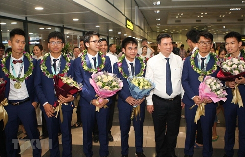 越南学生代表团从国际奥林匹克数学竞赛凯旋而归