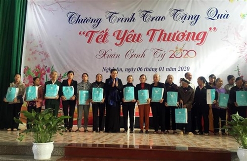 6日上午,越南妇女联合会中央委员会在宜安省琼流县山海乡举行2020年庚子年春节“爱心之春”活动。越共中央政治局委员、国会常务副主席丛氏放参加活动。