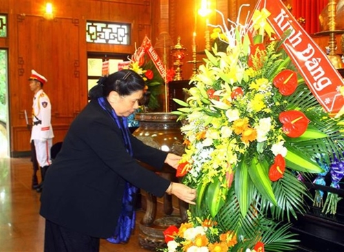 丛氏放同各中央部门和宜安省领导来到南坛县金莲遗迹区给胡志明主席上香(图片来源:越通社) |