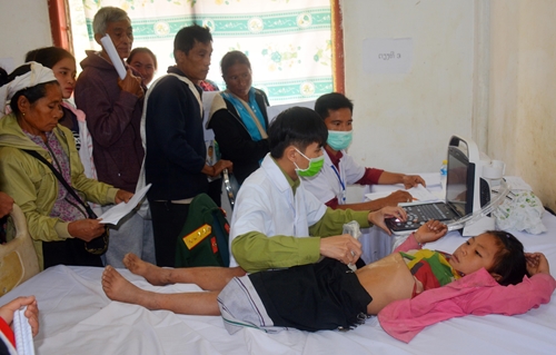 越南军医师队伍给老挝偏远地区人们看病