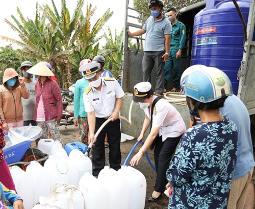 人民军队:3月28日,在槟椥省周城县交隆港,西贡新港总公司工作团与槟椥省越南祖国阵线委员会和当地政府联合为槟椥省周城县交隆乡近500户居民提供30万公升淡水。