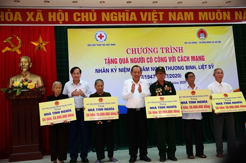 人民军队:7月26日,在广治省广治市,越共中央政治局委员、政府常务副总理张和平出席由劳动荣军与社会部同越南红十字会联合举行的“向革命功臣赠送礼物”活动。