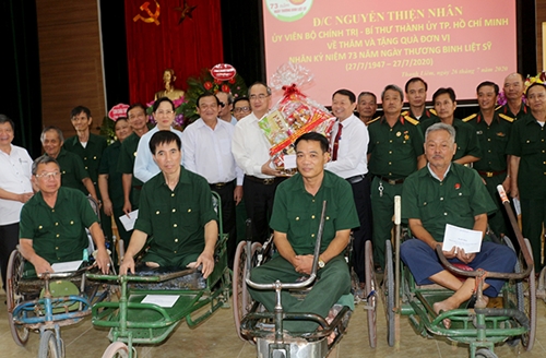 阮善仁向在疗养中心的伤病残军人致以亲切问候和由衷的感恩,鼓励伤病残军人克服战争留下的伤痕,发挥胡主席部队的美好品德,健康、快乐生活,对青年一代树立榜样。(阮征 报道)