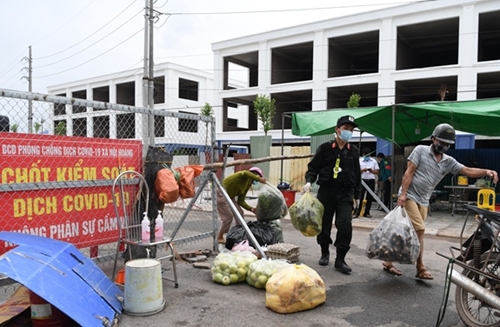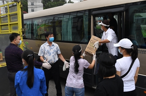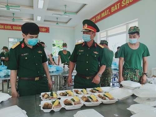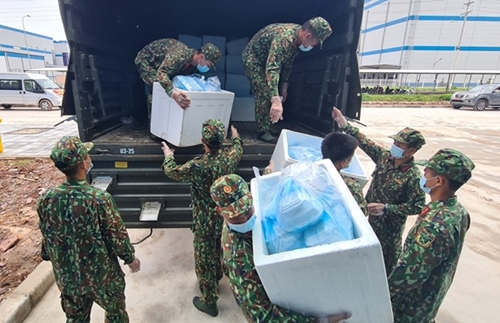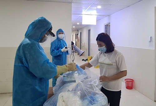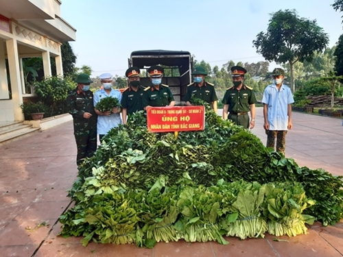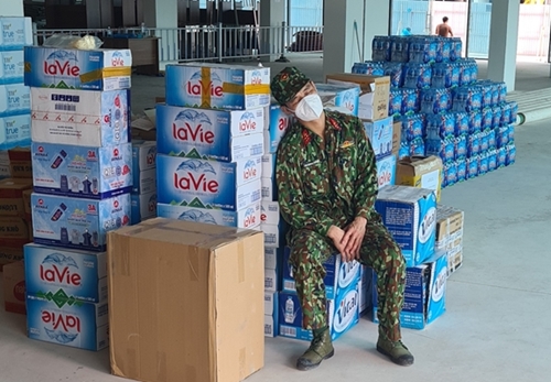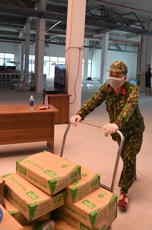 北江省军事指挥部和3师指战员将救济物资送给在云中工业园区接受隔离的民众。 |