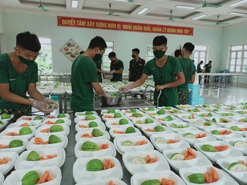 第一军区3师的干部和战士为隔离中的民众准备大量的盒饭。 |