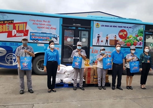 河内市工会为遭受疫情影响的贫困工人提供援助(图片来源:laodong.vn) |