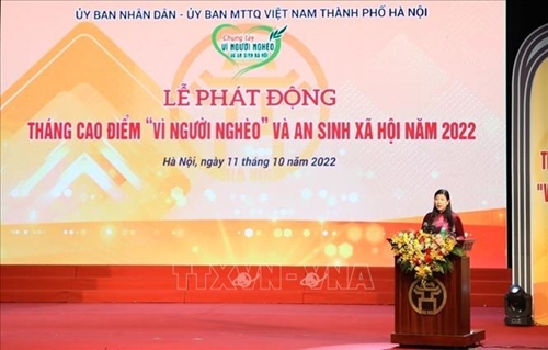为响应由政府总理启动的2021-2025年阶段“帮扶贫困者–不让任何人掉队”竞赛运动,10月11日,河内市人民委员会和该市祖国阵线委员会联合举行2022年“帮扶贫困者”和社会保障专项活动月启动仪式。