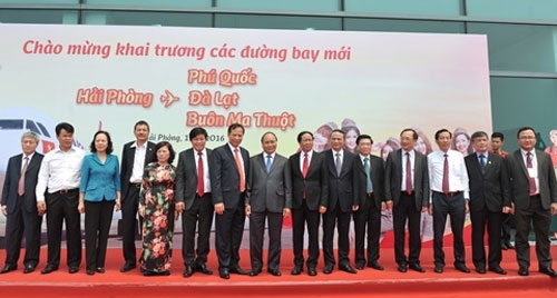 庆祝越南海防市吉碑国际航空港竣工通航仪式,越捷航空公司隆重举行海防市至富国岛(坚江省)、大叻市(林同省)及邦美蜀市(得乐省)三条航线开通仪式。越南政府总理阮春福出席。