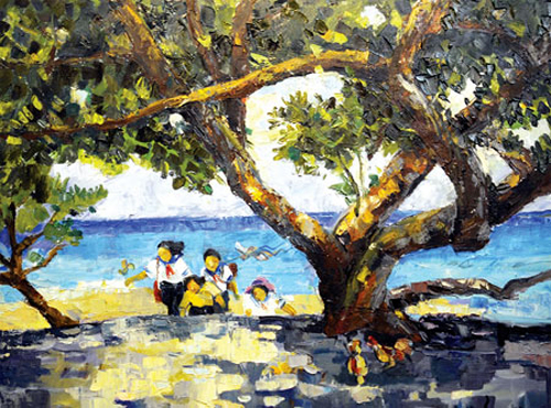 | 画家杜德凯创作的油画《银毛树荫之下》(图片来源:人民军队报) |