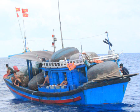 越南海上高脚屋官兵主动应对“海燕”台风