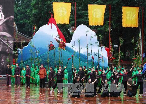 蓝京历史遗迹区国家级特殊遗迹区证书颁发仪式上的精彩表演节目(图片来源:越通社)
