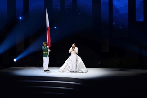 菲律宾歌手Nightingale Lani Misalucha唱起菲国歌,标志着开幕式的开始 |