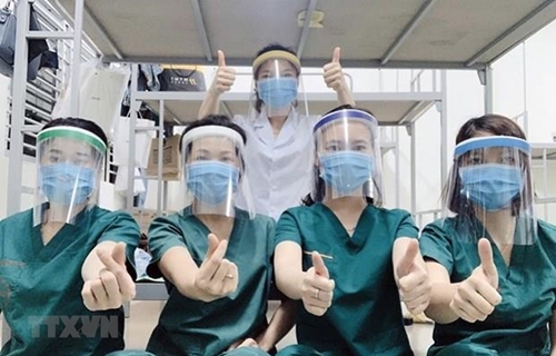 附图:中央热带病医院东英分院医务人员下决心打败疫情(图片来源:越通社) |
