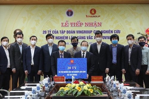 Vingroup集团向“越南制造”的新冠疫苗COVIVAC临床试验研究工作提供200亿越盾资助(图片来源:越通社) |
