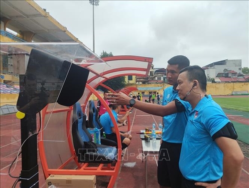 6月14日上午,越南专业足球股份公司(VPF)在行待(Hàng Đẫy)运动场进行的一场非正式比赛中为各位裁判员举办了首场视频助理裁判技术(VAR)培训课程。