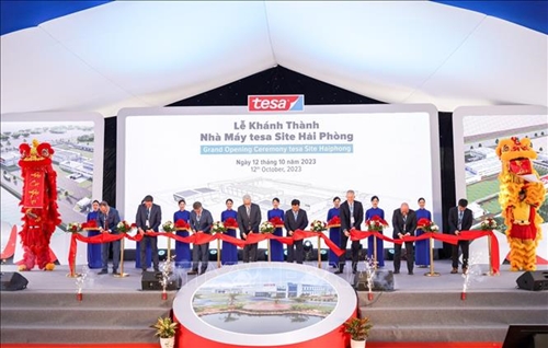 10月12日下午,全球领先的胶带解决方案制造商之一——德莎(Tesa)在海防市海安郡廷武-吉海经济区服务与航海工业区投资约5500万欧元的德莎西特海防工厂正式开业。