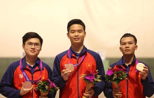 范光辉(中)再次为越南射击项目夺得金牌(图片来源:Báo Công luận) |