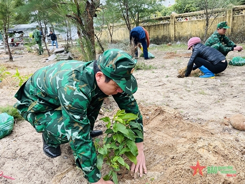 跟人民一起植树,美化景观环境(图片来源:人民军队报)
