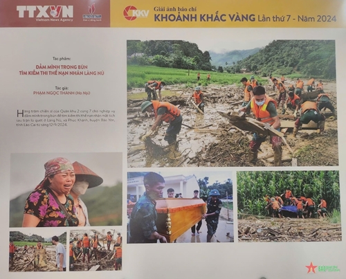 在颁奖仪式上,组委会向各作家作品颁发两个一等奖、四个二等奖、六个三等奖和十个优秀奖。河内市作者范俊英的作品《音乐拉近人与人之间的距离》(单图)和潘玉成作者的摄影作品《部队在朗努村山体滑坡现场泥泞中搜寻遇难者的遗体》获得一等奖。