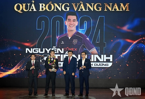 在男子金球奖评选中,平阳Becamex足球俱乐部前锋阮进灵力压群雄,荣获2024年越南男子金球奖。宁平扶董足球俱乐部前卫阮黄德获得银球奖,河内足球俱乐部前锋范俊海摘得铜球奖。