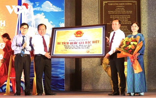 金瓯省接受“海上胡志明小道”国家级特殊历史遗迹证书。(图片来源:vov.vn) |