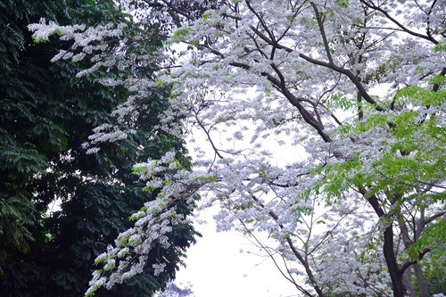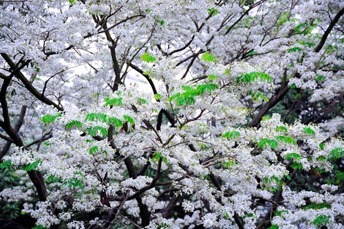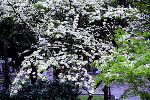 每逢3月份到来,河内大街小巷又盛开着洁白的黄檀花。在毛毛细雨中,黄檀花迎着轻风飘扬,给河内带来一个清爽的空间