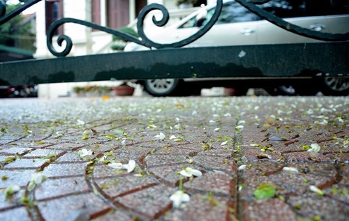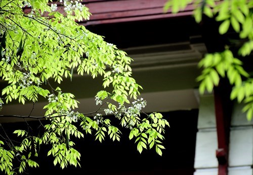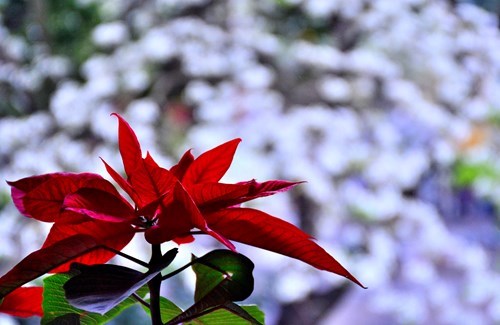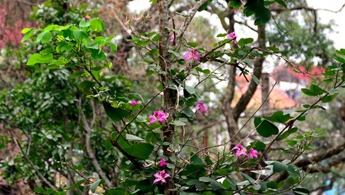 散布在河内一些角落上,偶尔还能看见几朵晚开的白色黄檀,还是一品红,或近年来在河内种植的西北山区紫荆花。
