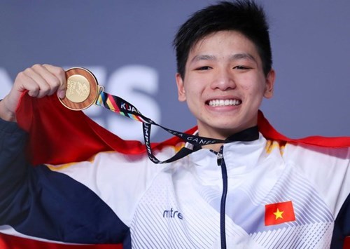 越南游泳运动员阮友金山夺得金牌,同时刷新东运会纪录(图片来源:人民军队报)