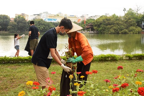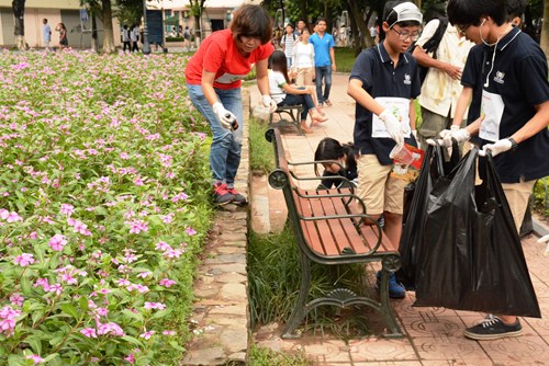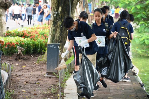 人民军队:10月7日下午,30多名志愿者已在河内市还剑湖开展公益环保捡垃圾活动。这是面向纪念河内首都解放日63周年(1954.10.10/2017.10.10)的切实活动,由Vinschool初中学校师生自发组织。