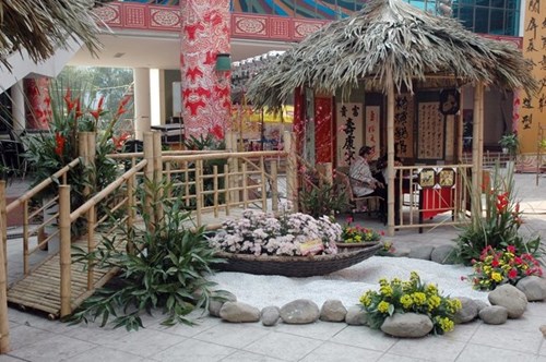 据此,民族传统节日整个空间的装饰将会富有越南春节的色彩,通过五果拼盘、煮粽子、春联、草屋、荷花池、蜂窝状石水井等形象再现越南传统春节。春节展销会还设有花卉展区和书法家写春联区。