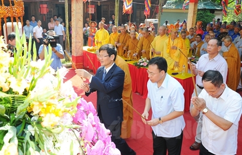 在宣读纪念文章和祭文结束后,海阳省领导代表和当地人民已敬香缅怀行民族英雄、世界文化名人阮廌,并在大司徒陈元旦寺里敬香。(完)